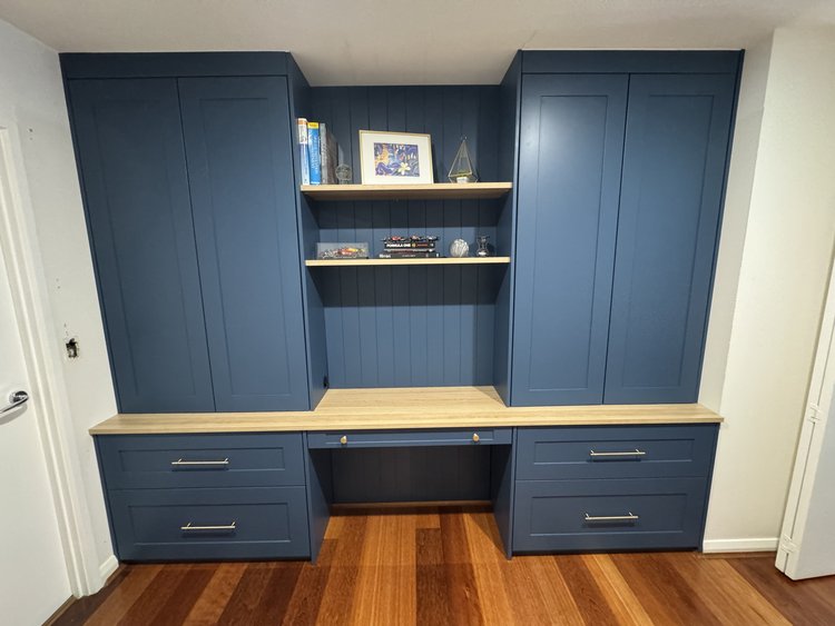 Explore our gallery to see a variety of projects, from sleek built-in wardrobes and luxurious walk-in wardrobes to custom home office cabinets and innovative laundry storage solutions. Each project reflects our commitment to quality craftsmanship and attention to detail.